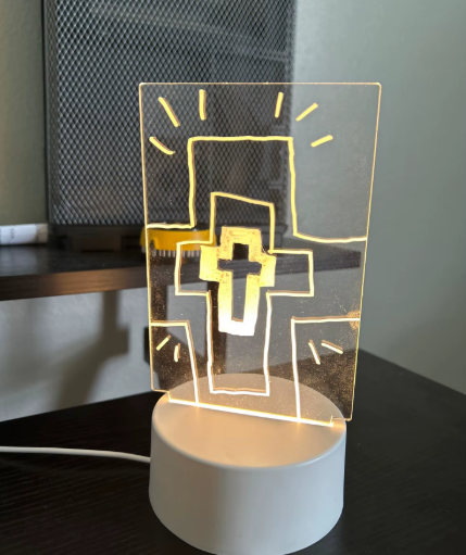 Lampka świetnie prezentuje się, gdy jest ciemno dzięki 3 trybom podświetlenia, jest to ciekawa opcja na prezent lub zabawkę dla dzieci i nie tylko.