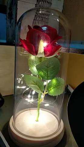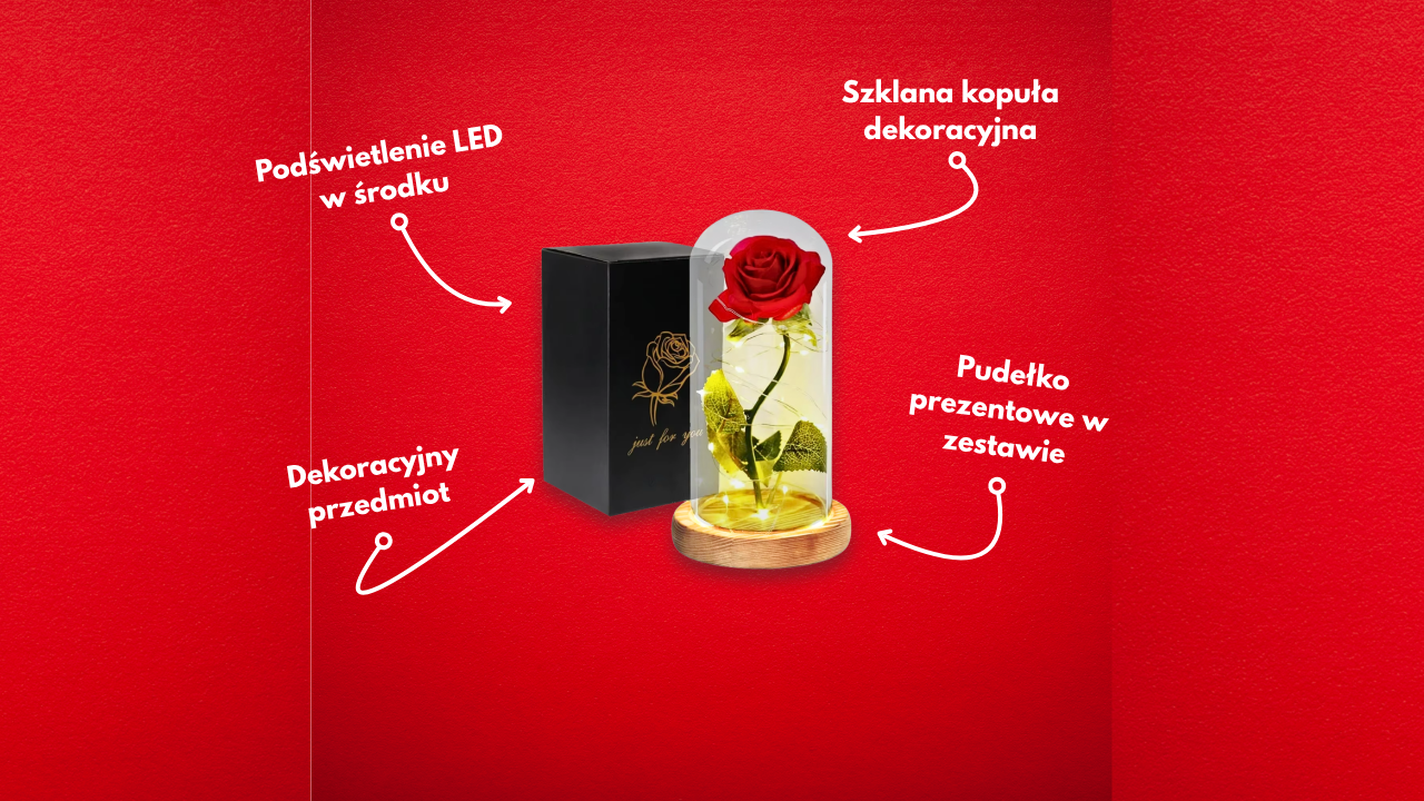 Ta wyjątkowa czerwona róża umieszczona w eleganckiej szklanej kopule z delikatnym podświetleniem LED to idealny wybór, jeśli chcesz przekazać uczucia, które trwają dłużej niż chwila
